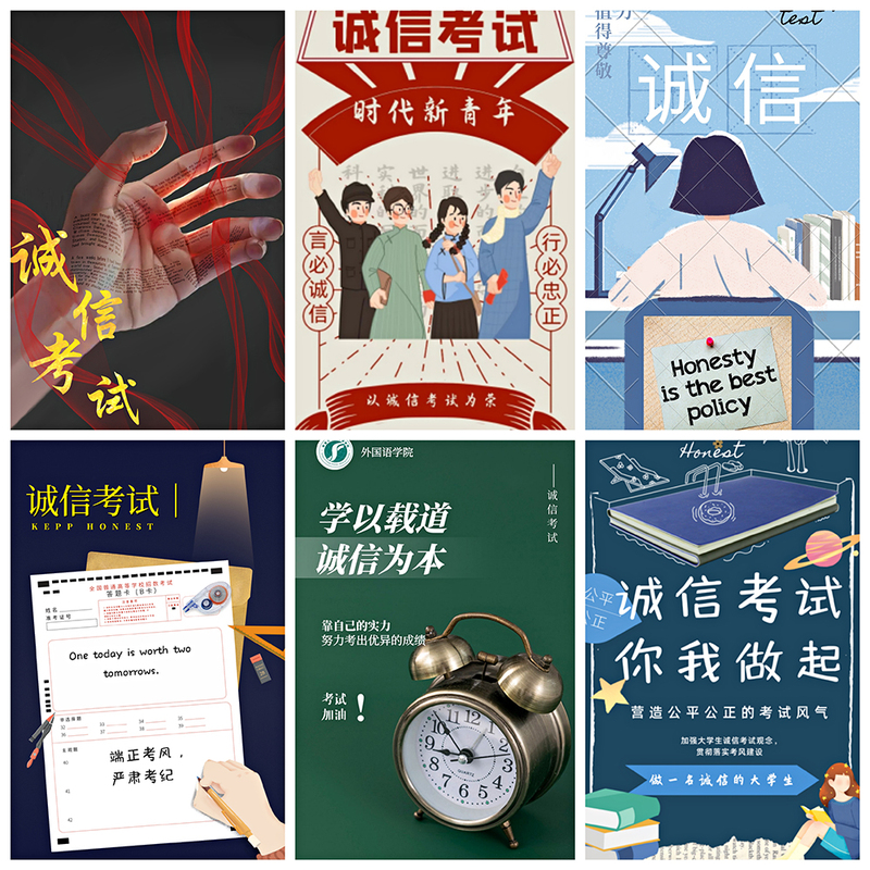 5月25日—6月2日,成人小说 举办“诚信考试”主题海报征集比赛活动。经过角逐,英语师范193班吴昭宇、翻译201班李梦雪的作品获一等奖。