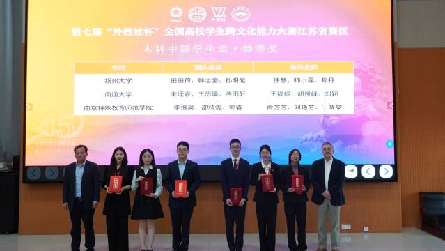 11月1-3日,第七届“外教社杯”全国高校学生跨文化能力大赛江苏省赛区比赛于在我校举办。在此次大赛中,成人小说 商务英语专业宋垤睿、教育科学学院小教语文(定向)专业王思璠、商学院(管理学院)工商管理专业燕雨轩三位同学代表成人小说 出战,经过两轮激烈的角逐,荣获江苏省赛区特等奖。我校留学生SATHINI NAMANIWAN、HOANG THI PHUONG ANH、NGUYEN THI THU获国际学生组二等奖。