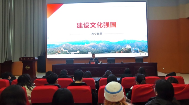 为深入学习贯彻党的二十届三中全会精神,持续推动习近平新时代中国特色社会主义思想进教材进课堂进头脑,12月9日,校党委副书记王卫东以“建设文化强国”为题,为成人小说 英语(师范)、商务英语专业大二学生讲授《形式与政策》课。成人小说 领导班子、教师和辅导员代表旁听了授课。