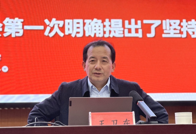 为深入学习贯彻党的二十届三中全会精神,持续推动习近平新时代中国特色社会主义思想进教材进课堂进头脑,12月9日,校党委副书记王卫东以“建设文化强国”为题,为成人小说 英语(师范)、商务英语专业大二学生讲授《形式与政策》课。成人小说 领导班子、教师和辅导员代表旁听了授课。