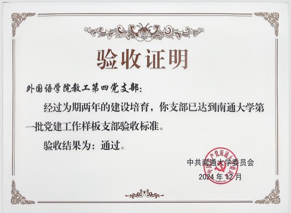 此次顺利通过验收,是对成人小说 党委和教工第四党支部过去两年党建工作的高度认可。这不仅彰显了学院在党建工作方面的出色能力,也为校内其他院系和支部树立了优秀的典范。