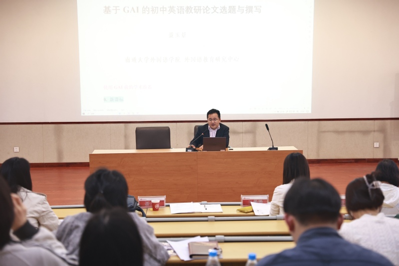 近日成人小说 外语教育研究中心聂玉景博士应邀赴苏州工业园区朝前路实验学校,为“孙向梅名师工作坊第十三次主题研修暨园区初中英语学科基地校研讨活动”作专题讲座,分享生成式人工智能在初中英语教研领域的应用经验。