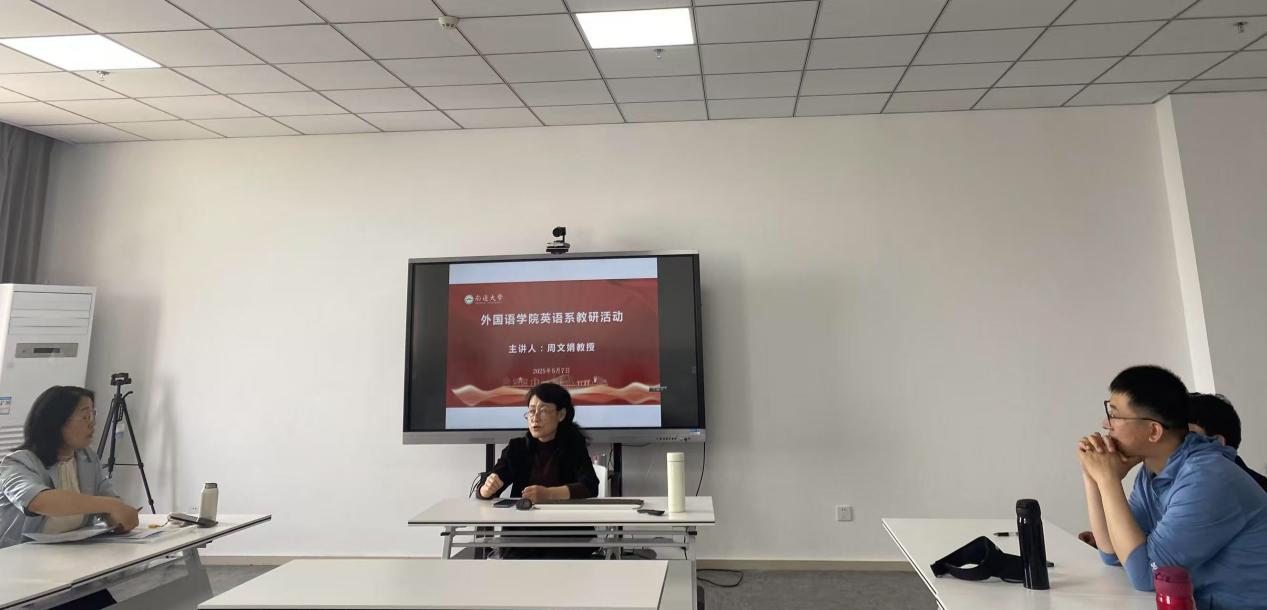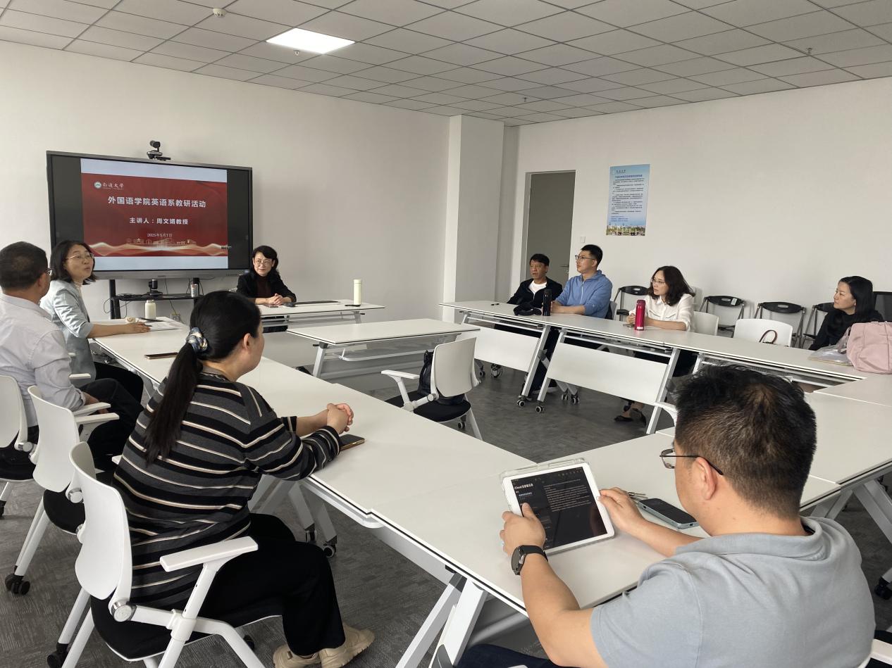5月7日下午,成人小说 英语系于25号楼711研讨室举办“教科研经验分享与交流”主题教研活动,邀请资深教授周文娟老师与教师团队通过问答形式展开深度交流,旨在提升教师教学科研能力,促进团队协作发展。活动由英语系主任陈凤华主持,英语系全体教师参与。