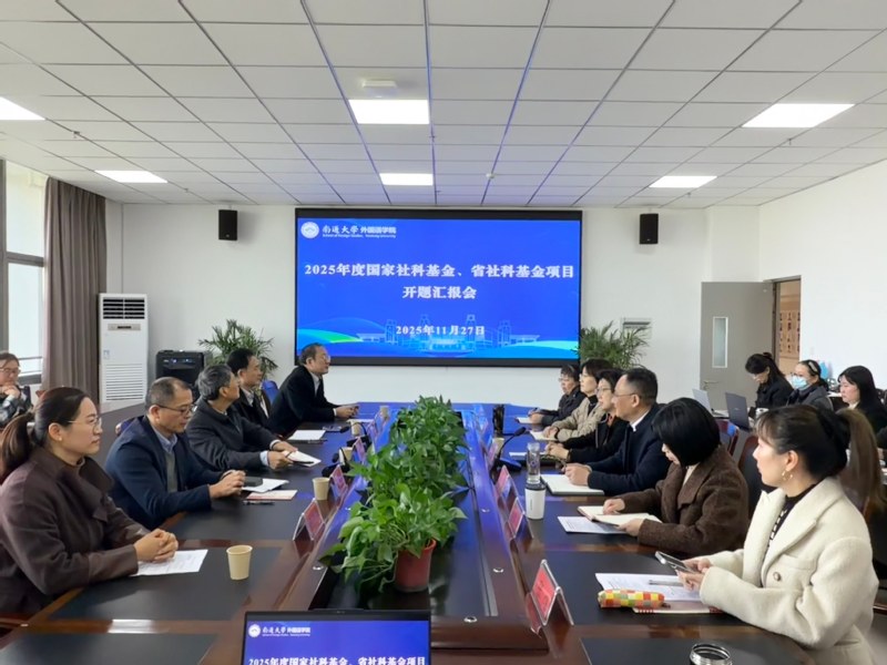 11月27日上午,成人小说 举行了2025年度国家社科基金、省社科基金项目开题汇报会。会议特邀浙江大学吴笛教授、南京大学杨金才教授、广东外语外贸大学冉永平教授、南京工业大学陈世华教授担任评审专家。成人小说 人文社科处副处长邹月辉、学院领导班子出席会议。汇报会由院长佘军主持。