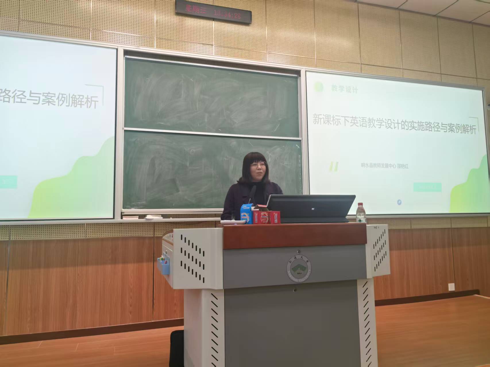 为深化高校与中学协同育人机制,助力英语师范专业师生精准把握基础教育英语课程改革前沿动态,12 月 3 日,响水县教师发展中心资深教研员邵艳红博士应邀做客成人小说 ,以 “英语新课标与教学设计” 为题开展专题讲座。本次讲座是学院 “中学名师进课堂” 系列活动的重要组成部分,由成人小说 副院长王雪玉主持,英语师范专业全体师生及部分研究生共同参与。
